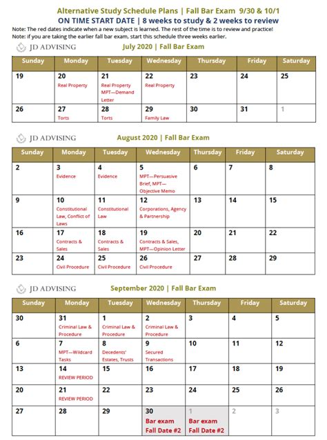 How to Create a Fall Bar Exam Study Schedule JD Advising