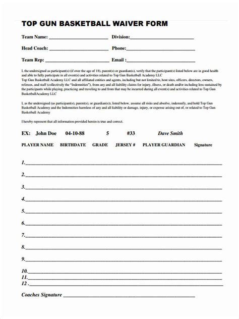 Printable Basketball Waiver Form Template Printable Forms Free Online