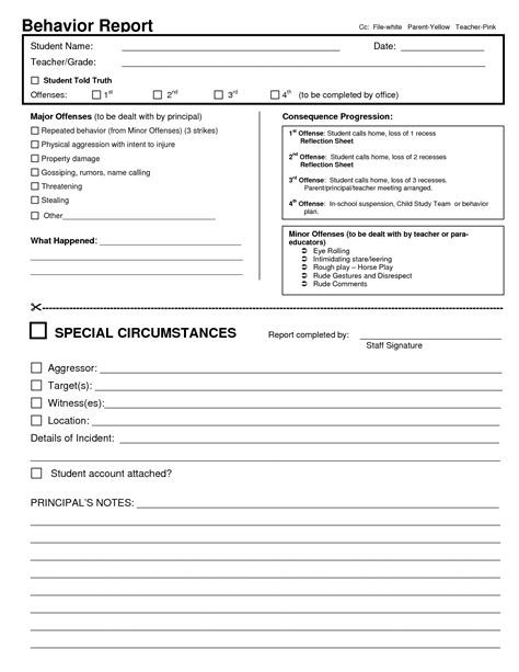 Behavior Report Template Behavior Report Cc File white Parent Yellow