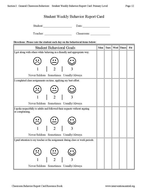 Weekly Behavior Report Template Examples Card Progress Student inside