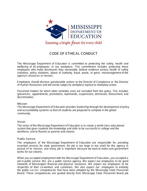 Mississippi Code of Ethical Conduct Policy Acknowledgment Form Download