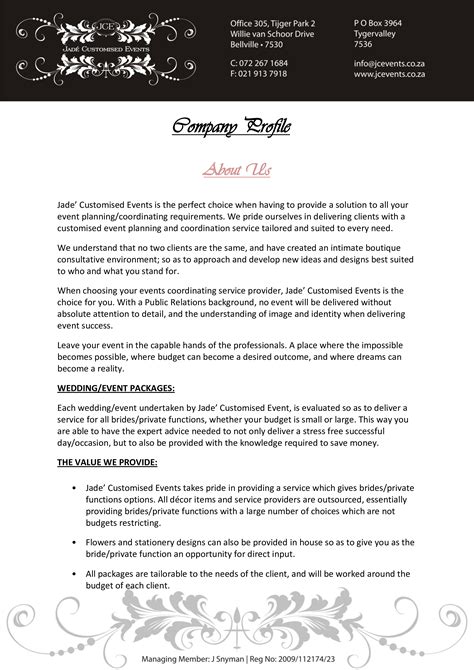 Company Description Example Profile For Event Management Pdf inside