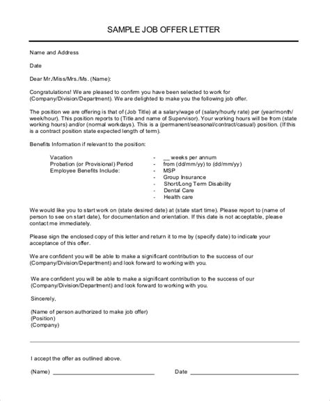 FREE 9+ Sample Offer Letters in PDF MS Word