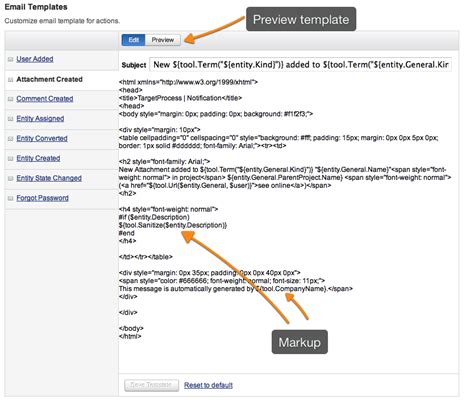 How to change an email notification template Targetprocess Visual