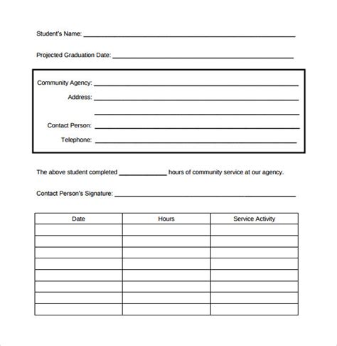 Community Service Hours Template