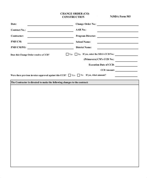 FREE 9+ Sample Construction Change Order Forms in MS Word PDF