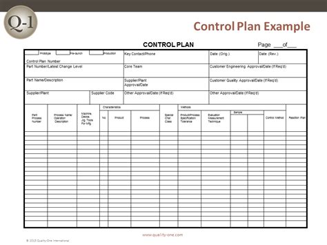 Control Plan Example QualityOne