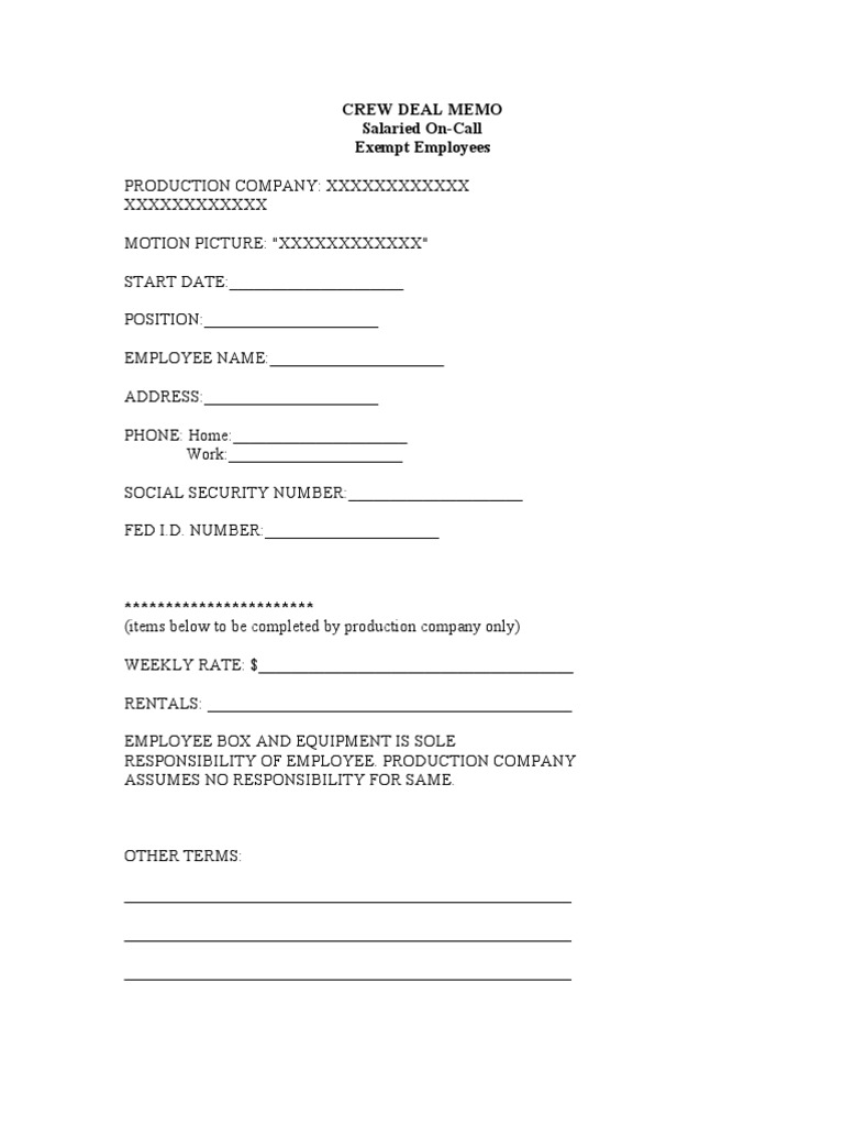 Crew deal memo in Word and Pdf formats page 2 of 2