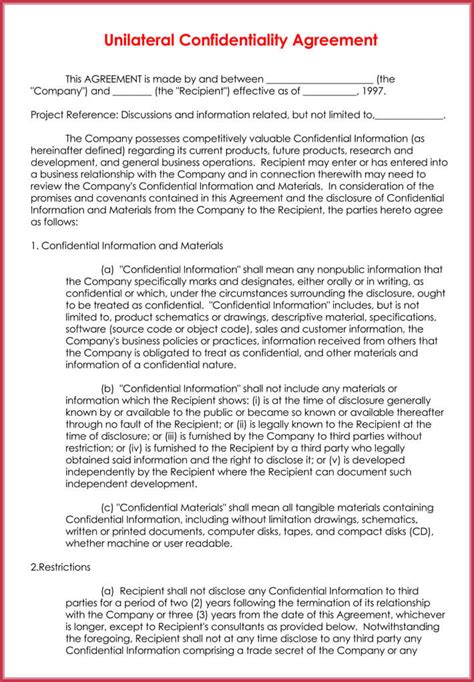 Non Disclosure Agreement Template Uk Free HQ Printable Documents