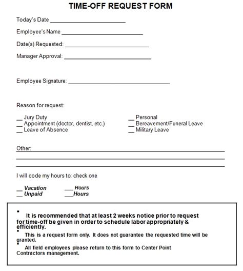 Time Off Request Form In any event, as you're making your form, you