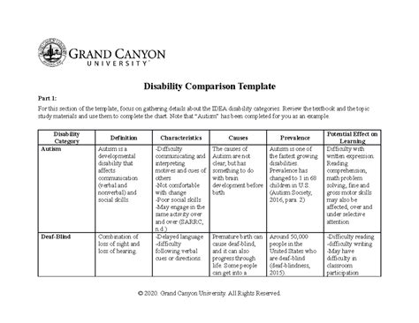 For this section of the template, focus on gathering details about the idea disability categories. Review the textbook and the topic study. Add to cart add to wishlist. Web grand canyon un iversit y disability comparison template part 1: Review the textbook and the.