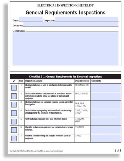 Electrical Inspection Checklist Inspection checklist, Electrical