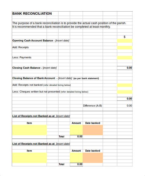 FREE 10+ Sample Bank Reconciliation in MS Word MS Excel Pages