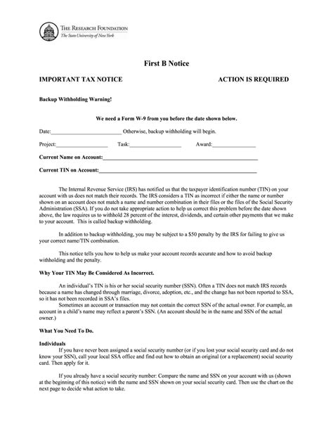 Edit your irs first b notice form template online. Check out how easy it is to complete and esign documents online using fillable templates and a powerful editor. Web how to fill out the first b notice sample letter form on the web: Web 15 first b notice important tax notice action is required backup withholding warning! Web form first.