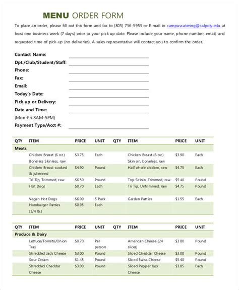8+ Menu Order Forms Free Samples, Examples Format Download