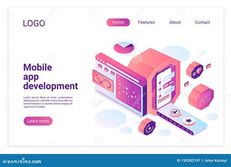 Mobile App Development Landing Page Isometric Vector Template Stock
