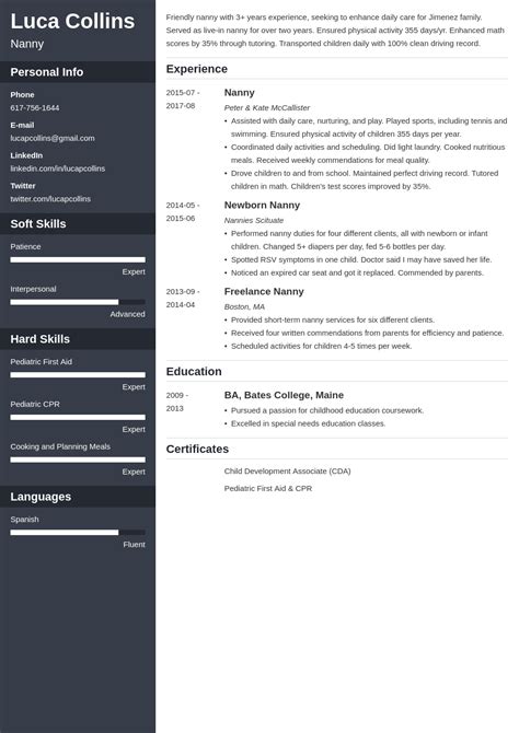 What is a nanny resume?. Sample and free template [2020] use these nanny resume sample bullets to create your resume and land your dream job. Ad the online resume builder so easy to use, the resumes write themselves. All examples are written by certified resume experts, and free for personal use. Come on, you know which one.