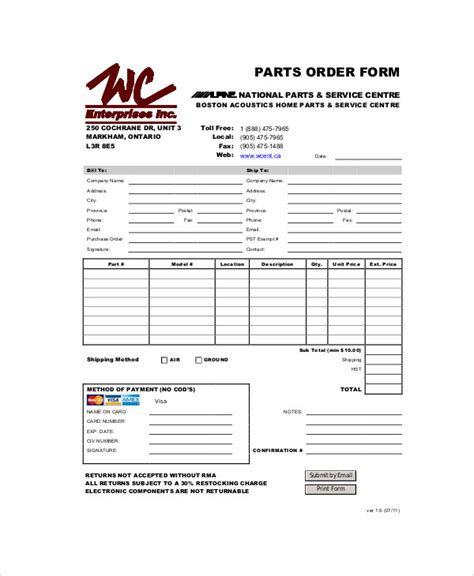 FREE 11+ Sample Parts Order Forms in MS Word PDF