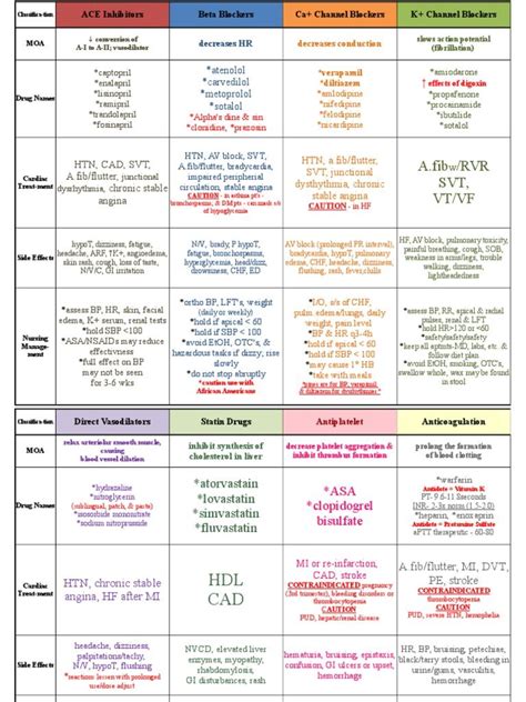 Common Cardiac Medications Pharmacology Cheat Sheet Medical eStudy