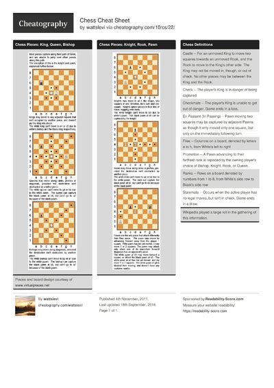 Web what is a chess score sheet? Ad find deals on chess moves cheat sheet posters & printsin on amazon. Do i know how to play chess? Web spruce up your game room with this printable rules of chess cheat sheet. Web printable cheat sheet chess rules.