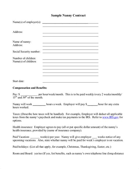 FREE 10+ Nanny Contract Sample Templates in MS Word Google Docs PDF