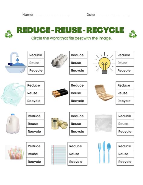 reduce reuse recycle worksheets pdf worksheet environments worksheets