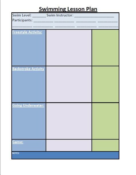 Swim Lesson Plan Template Level 1 Swimming Lessons Ideas