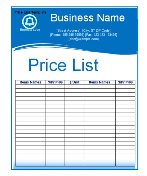 Free Printable Price List Template Printable Templates