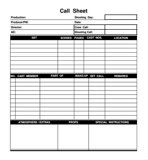 FREE 10+ Sample Call Sheet Templates in MS Word PDF