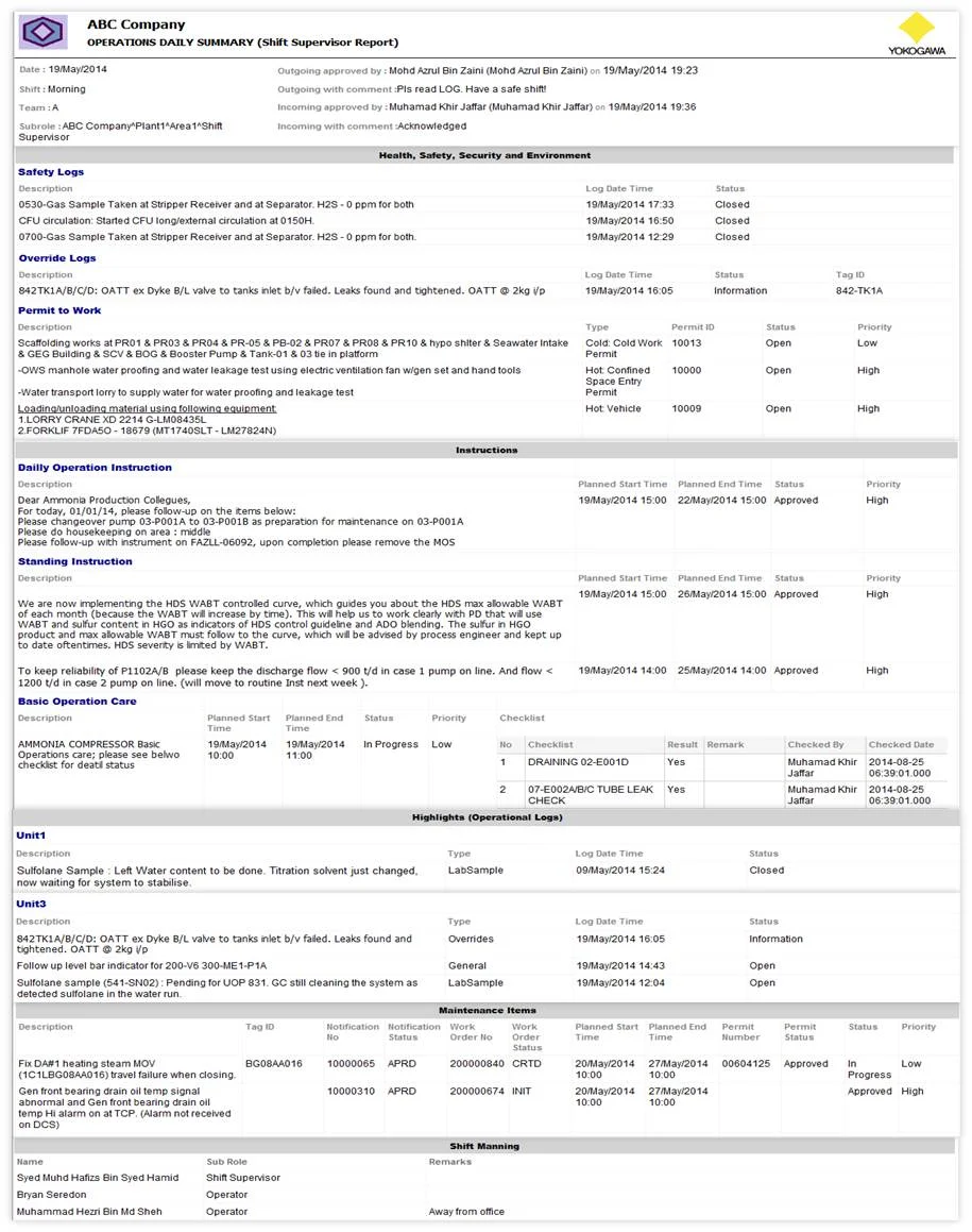 ShiftHandover Structured Logbook Design — Yokogawa Digital Solutions