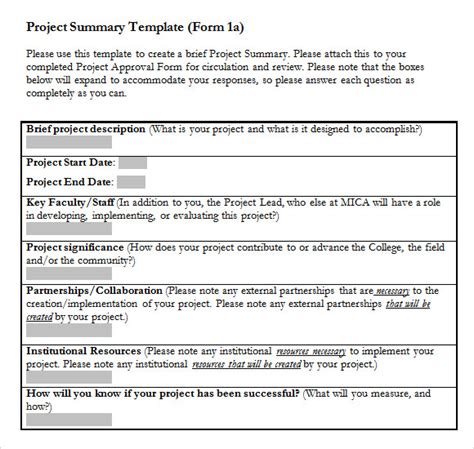 FREE 8+ Sample Project Summary Templates in PDF MS Word Excel