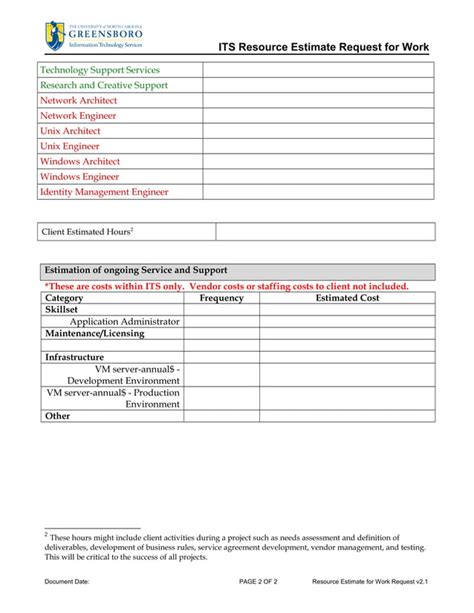 Its resource estimate for work request v c