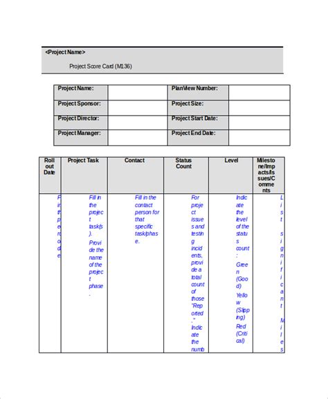 Sample Project Scorecard Template 7+ Free Documents Download in PDF