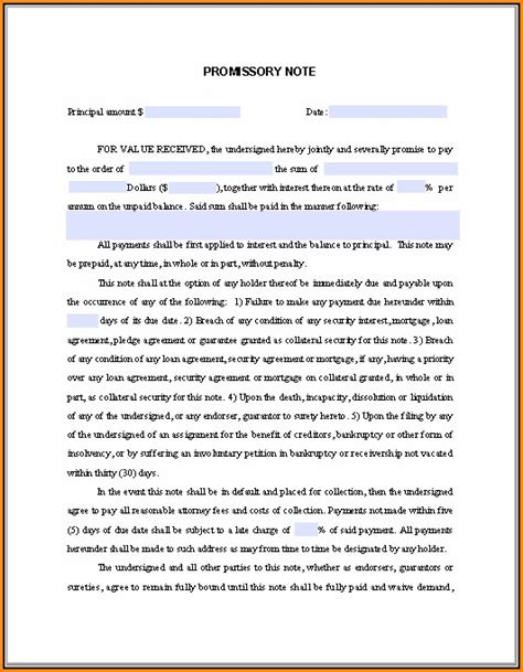Free Printable Promissory Note For Personal Loan Free Printable A To Z