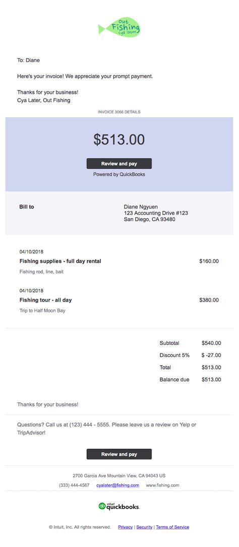 Quickbooks Online Email Invoice Template Cards Design Templates