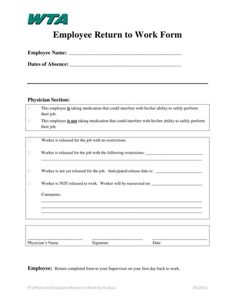 49 Best Return To Work [& Work Release Forms] ᐅ TemplateLab
