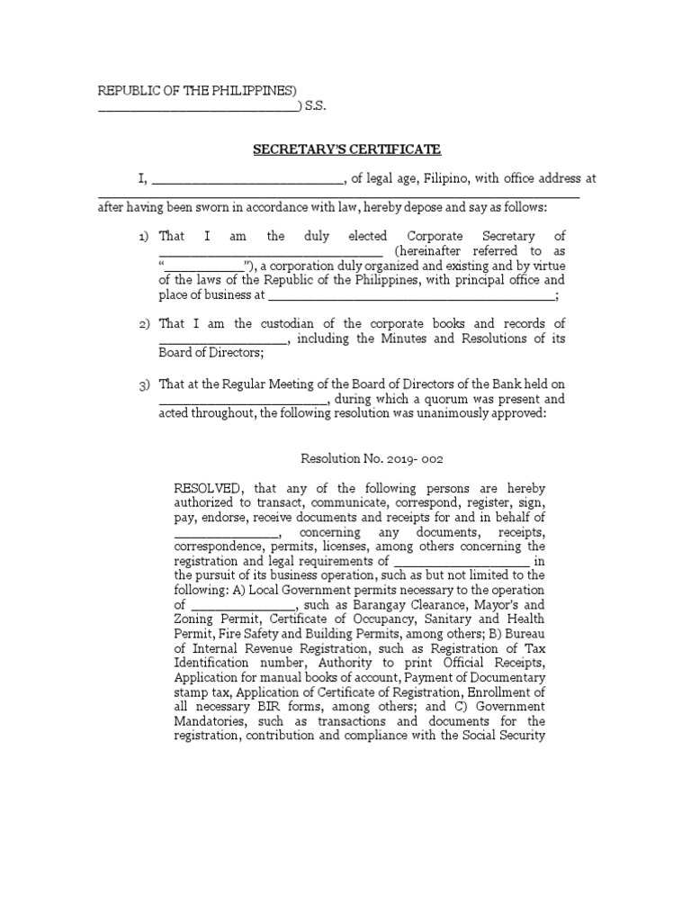 It verifies the corporation's organizational. Web a secretary's certificate is a legal document used to certify facts or actions taken by a company or organization. Use a secretary's certificate template template to make your document workflow more streamlined. Web sample secretary's certificate for opening bank account form. Ad find deals on certificate templates on amazon.