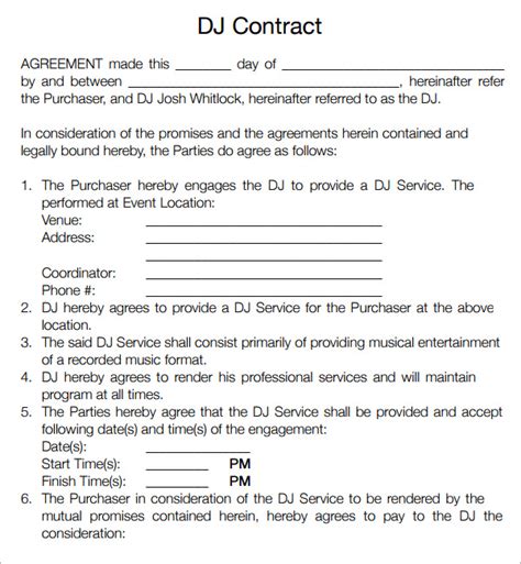 Free Printable Dj Contract Template PRINTABLE TEMPLATES