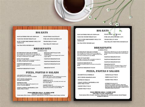 Restaurant / Cafe Takeout Menu Template Take out menu, Menu template