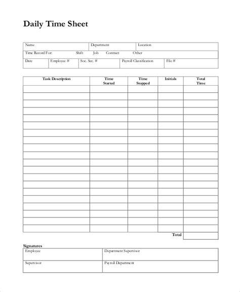 FREE 9+ Sample Printable Time Sheet Templates in PDF MS Word Excel
