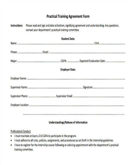 Student Training Agreement Template Google Docs, Word