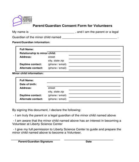 Volunteer Release Form For Minors Parent Consent Form (To Fill