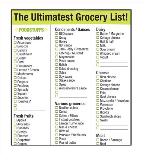 Creating A Shopping List Template For Efficient Shopping Free Sample