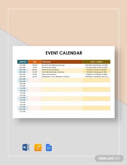 FREE 23+ Sample Event Calendar Templates in PDF MS Word Google Docs